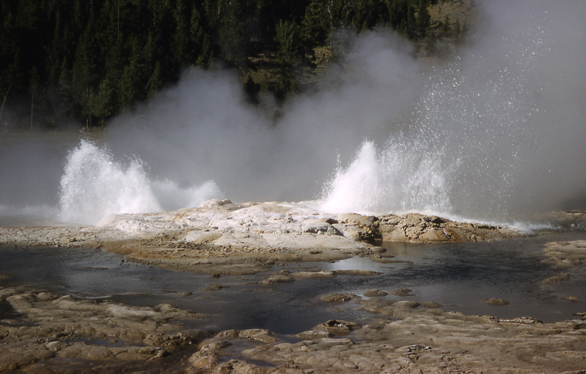 The newspapers reported that Gibson’s touring party of teenagers stopped at Old Faithful to walk around the geyser basin. Gibson stepped onto what he thought was a stone at the edge of a hot spring. Instead, it was a thin crust of sinter which gave way and precipitated him into the scalding water.
