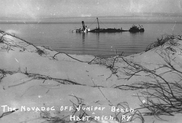 Among the worst disasters were the complete loss of both the 380-foot steamship Anna C. Minch and the 420-foot steel freighter William B. Davock. All hands perished – 24 on the Minch and 32 on the Davock. The Minch was found a mile and a half south of the pier at Pentwater with her mast still above water. Bodies from both ships washed up along the shore near Pentwater and Ludington, leading some to speculate that they had collided.